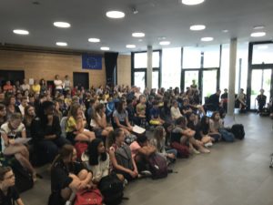 Salle comble ! Le 9 mai et son concert à l’Ecole européenne attire élèves, professeurs de toutes les classes, langues, nationalités, langues. Un lien entre les différentes origines européennes, une musique venue de toute l’Europe, les élèves de l’EES, du Conservatoire de Musique… Ce lien est celui de la musique mais aussi de l’Europe pour ce traditionnel rendez-vous.