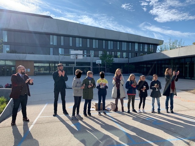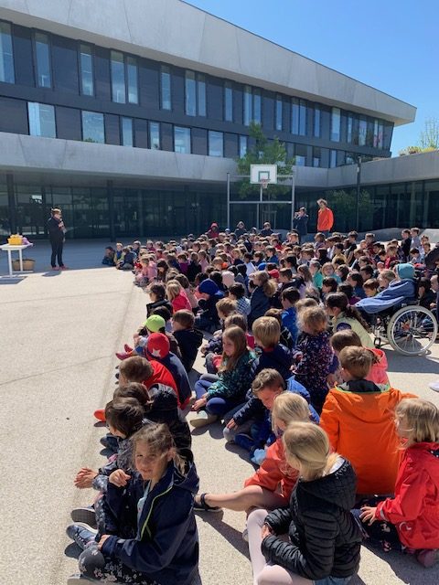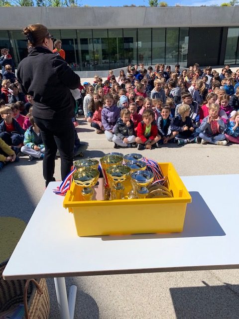 En même temps, les classes P1 à P4 sont allées relever le défi de courir des durées entre 8 et 20 minutes au parc de l’Orangerie afin de participer à l’effort solidaire. Pour chaque kilomètre couru, un don sera versé à des organisations caritatives des deux côtés du Rhin.