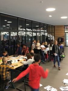 Différents événements ont été organisés par les équipes enseignantes toute la journée : les élèves de P4 à S4 ont reçu la visite de leurs camarades qui les ont initiés à différentes langues parlées chez eux (japonais, russe, turc, géorgien, grec, espagnol, hongrois, lituanien, italien…) ; les classes de P1 et P2 ont écouté « Les Trois petits cochons », lus successivement dans les trois langues de sections ; l’ensemble de l’école a participé à la réalisation d’une fresque monumentale dans le hall de l’école sur le thème « Ma langue est un pont » : une belle collaboration entre élèves et enseignants du primaire et du secondaire (plusieurs centaines de ponts découpés et accrochés dans la journée) ; les S3DE ont lus des albums en français aux P3DE au Learning Center ; les lycéens, quant à eux, ont eu la chance d’assister à une conférence sur le métier d’interprète, présentée par Mme Kipping et les élèves ayant participé à l’European Student Council 2019 ; et bien d’autres actions menées en maternelle et dans les classes de primaire.