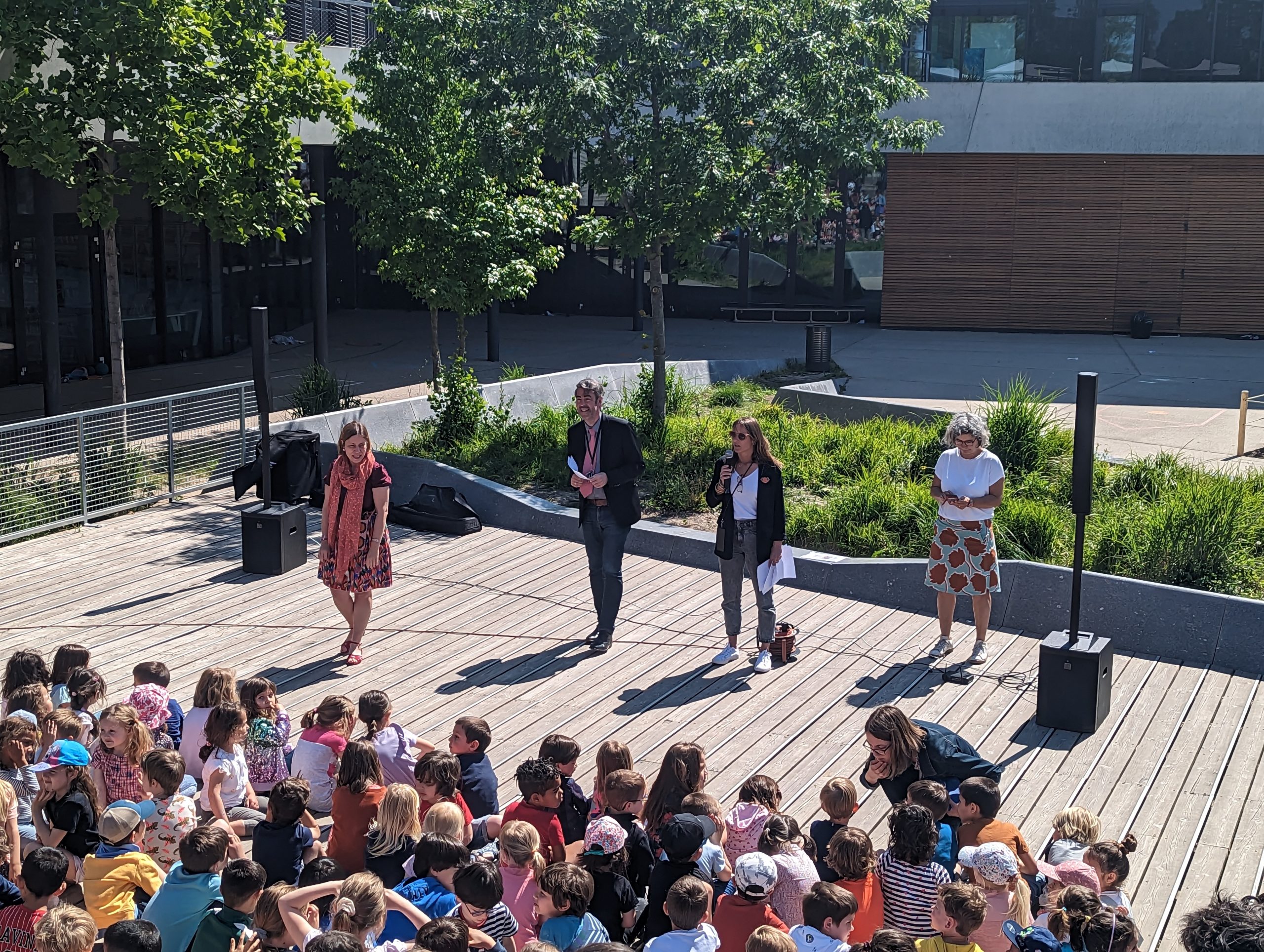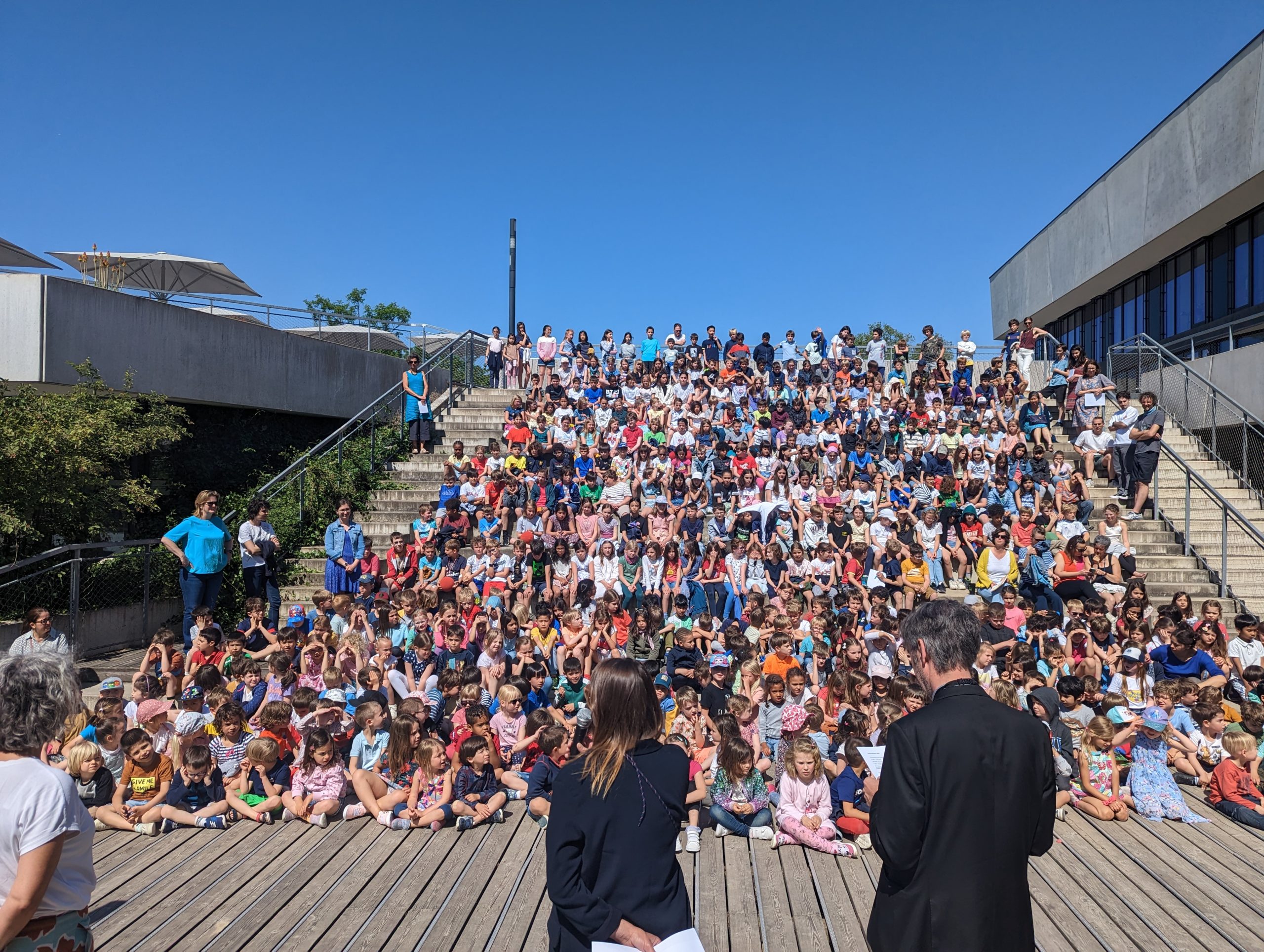 Les 19 classes participantes se sont réunies dans la cour du primaire pour l’annonce des résultats et la remise des diplômes aux gagnants de chaque niveau.