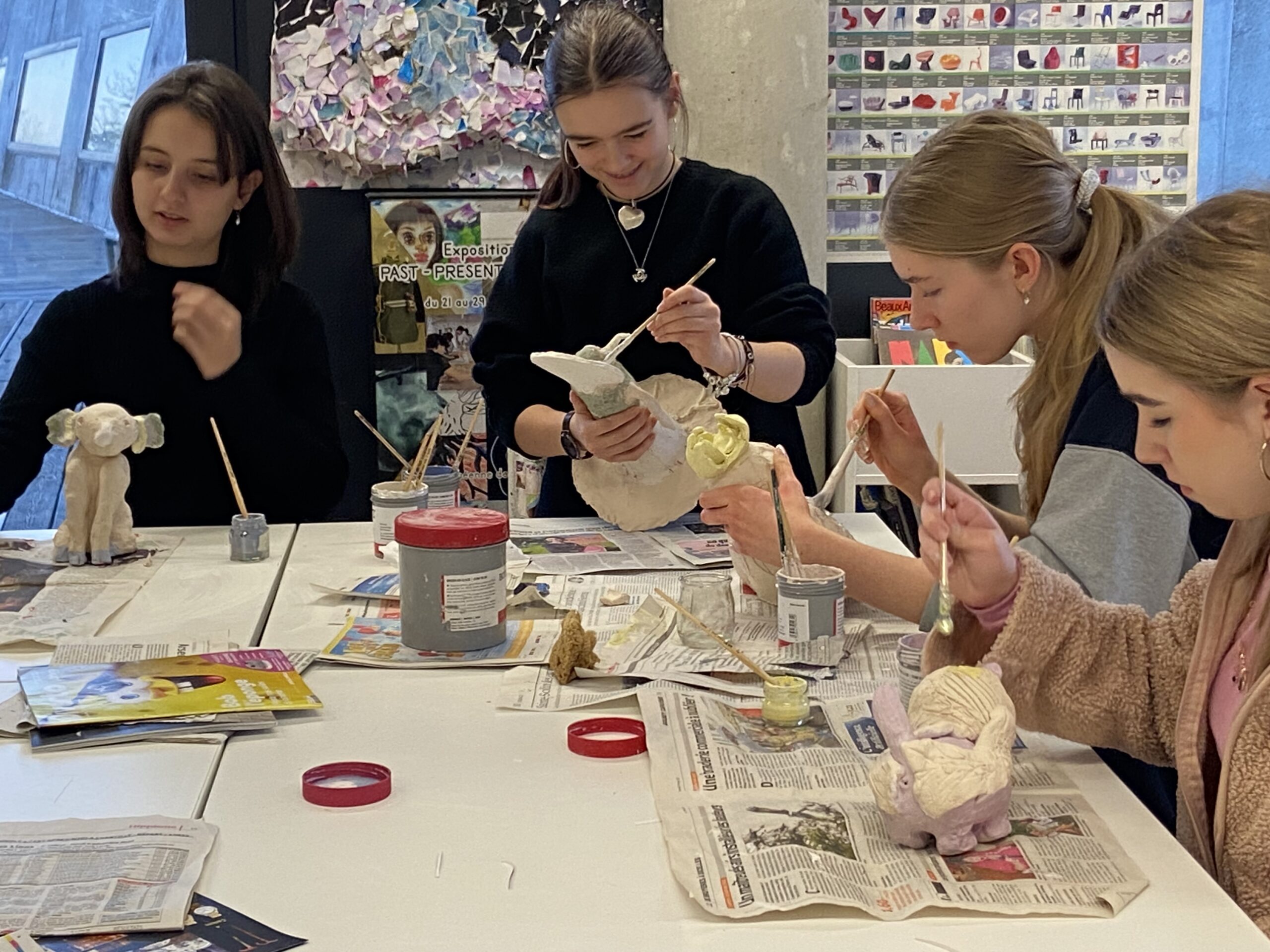 Afin de faire profiter d’autres élèves de leur nouvelle expertise en matière de céramique, les élèves de S4 option ART ont accueilli la classe de P1EN de Diane Harriman pour une séance de modelage à l’argile sur le thème de la nature.